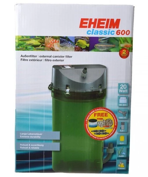 Put cleanliness first and protect your tank with the Classic 600 External Aquarium Canister Filter from Eheim. With this exceptional filtration system, you’ll get both mechanical and biological purification, constant water circulation and oxygen enrichment in one compact system. It’s even been tried and tested to ensure optimum efficiency! Already equipped with everything you need to get started—including detailed instructions—the Eheim Classic is one filter that gets the job done.