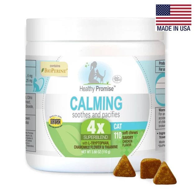Help your feline friend find her zen with Four Paws Healthy Promise Calming 4x Superblend Chicken Flavor Soft Chews Cat Supplement. These supplements are specially formulated to help soothe your pretty kitty in stressful situations like fireworks, thunderstorms or travel. They contain a 4x super-blend of natural ingredients like muscle-relaxing chamomile, thiamine and l-tryptophan for stress regulation. The formula also includes BioPerine to help your kitty absorb nutrients quicker, while other natural ingredients like brewer’s yeast and salmon oil provide more health and wellness benefits. These quality chews are made in the USA and feature the National Animal Supplement Council’s (NASC) seal of approval. And as a bonus, they have a delicious chicken flavor—so your pal gets all the soothing benefits in a totally tasty treat!