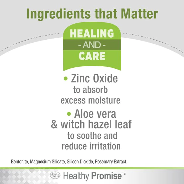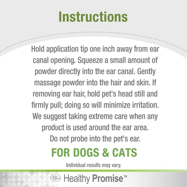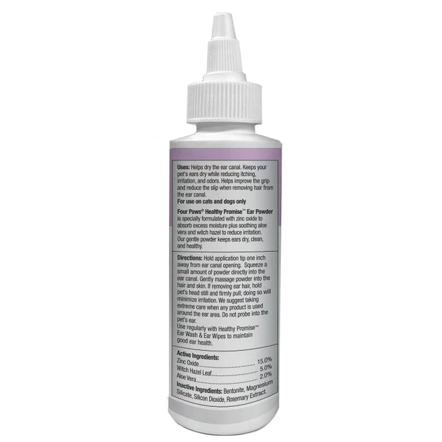Keep your fur-iend’s ears in tip-top shape with Four Paws Healthy Promise Pet Ear Powder. This gentle ear powder is formulated with zinc oxide to absorb excess moisture. Soothing aloe vera and witch hazel help reduce uncomfortable irritation. Paw-fect for feline and canine friends, this special formula is designed to safely keep your buddy’s ears dry, clean and itch-free.
