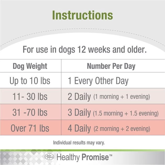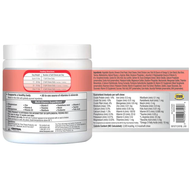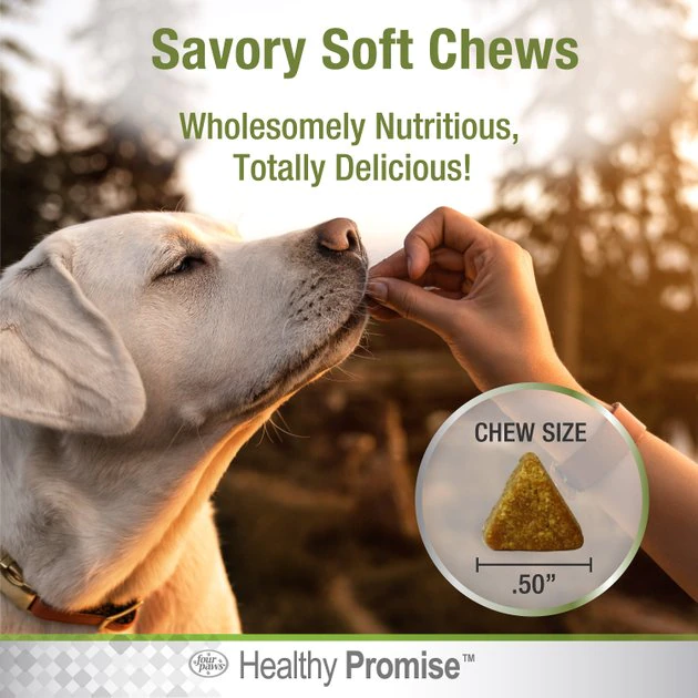 Help your favorite furry paw-tner stay at the top of her game with Four Paws Healthy Promise Multi-Vitamin All-In-One Chicken Flavor Soft Chews Dog Supplement. This all-in-one chew is loaded with essential vitamins and minerals to help your pooch stay active and well. A blend of magnesium, iron, zinc and vitamin C all work to support your buddy’s immune system and overall health, while the tasty chicken flavor makes this supplement easy to enjoy. These quality supplements are also made in the USA and feature the National Animal Supplement Council’s (NASC) seal of approval. It’s just the boost your precious pup needs for a healthy and happy lifestyle!