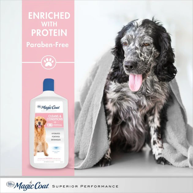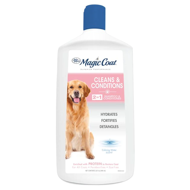 Cleanse and moisturize your dog’s fur in one go with Four Paws Magic Coat 2-in-1 Dog Shampoo & Conditioner! This formula is made in the USA with protein and helps detangle unruly knots and mats by fortifying and hydrating your hound’s hair. It features a Calming Waters scent that you and your BFF are bound to love, and it works on all coat types, regardless of length, texture or color. Using a 2-in-1 formula adds convenience for you and helps speed up the process for your pup, which is especially great for dogs who don’t like taking baths.