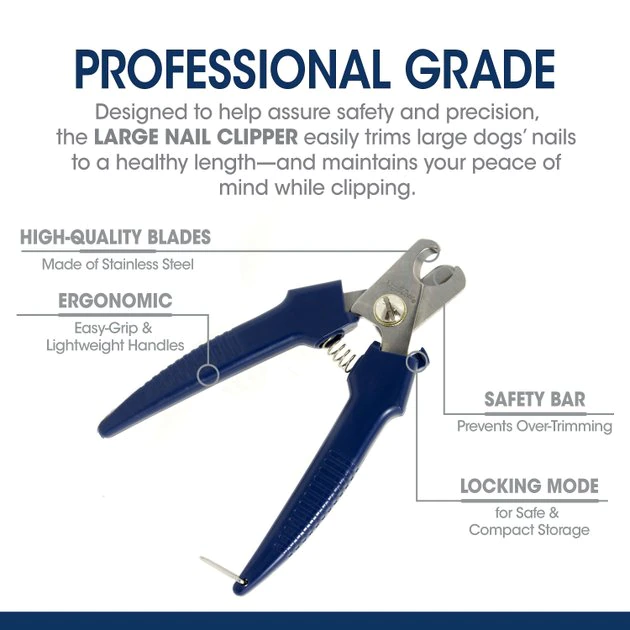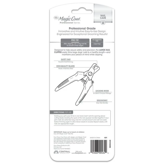 Clipping your canine companion’s nails can be tricky and nerve-wracking, but with Four Paws Magic Coat Professional Series Super Nail Dog Clipper, you can help your pal look and feel his breath with minimal worry. Specifically designed for larger fur babies, this clipper features a large opening for his nails and a built-in safety bar to help prevent over-trimming. The blades are made of stainless steel, which can help give your furry friend a more precise trim. Ergonomically designed, this nail trimmer has handles to help pet parents have more control. The blades also lock for safe and convenient storage. Ideal for large dogs.