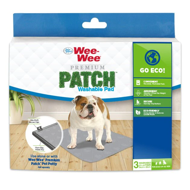 When nature calls, give your pup an easy way to answer with the Four Paws Wee-Wee Premium Patch Reusable Dog Pad! These reusable dog pads are not only easy and convenient, they are eco-friendly and money-saving, as well—designed for repeat use. This means that your pup’s go-time pads add less of a burden to landfill waste. Leak proof, slip-proof and able to absorb four times their weight in liquid, these pads help keep your house clean and fresh while making sure your best pal has a place to potty with ease!