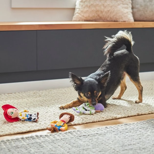 This trio of iconic toys, available only at Chewy, is here to bring the plushy, squeaky fun to your Pixar pup’s collection. Featuring Woody, Jessie and Buzz Lightyear from Disney and Pixar’s Toy Story, this three-pack has all your dog’s favorite characters. That’s three times the fan-tastic fun! Each toy has a soft cover, plush stuffing and a squeaker inside, so they’re easy on your dog’s mouth, totally snuggleable and great for interactive or solo play. Your pup will always have a friend in these three Pixar pals.