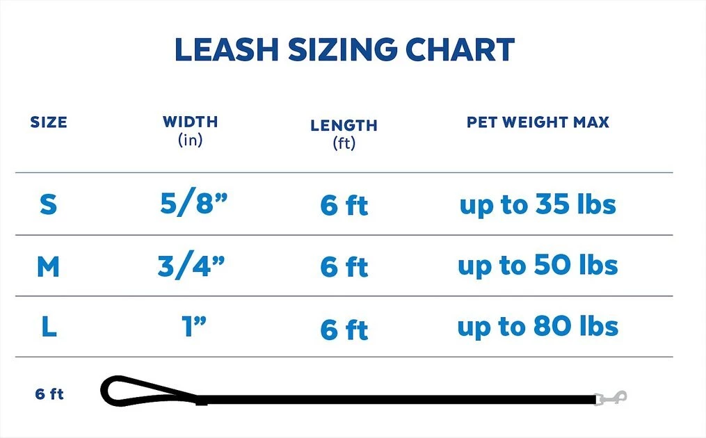| Size | Leash Length | Leash Width | Recommended Pet Weight |