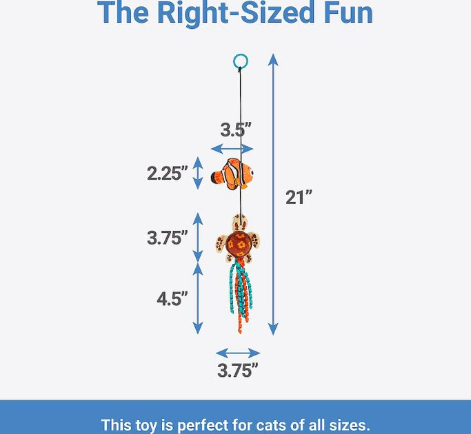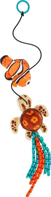 - Cat toy includes two plush, catnip-stuffed Nemo and Squirt toys on a super-bouncy string.