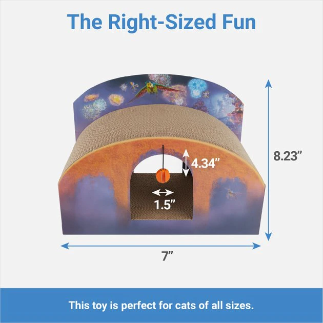 Let your kitty hang out around the Marigold Bridge from Disney Pixar’s Coco with this fan-fave scratcher toy, available only at Chewy. The arched design is perfect for kitty to scratch and stretch on the daily, and the built-in cave makes for the most ready-to-chill hideaway in the land of the living. Corrugated cardboard helps your cat maintain healthy claws and develop good scratching habits. As a bonus, this scratcher includes a dangling cardboard toy so kitty can scratch their itch for play, too!