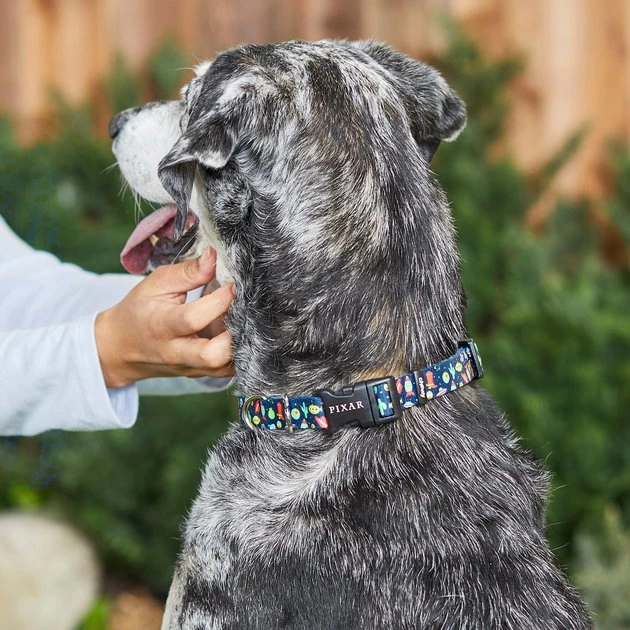 Rep your pup’s favorite Pixar movie with the Toy Story Dog Collar. It’s a cute and comfy combination designed with everyday wear in mind. Made with durable, high-quality polyester that has an Ultra-Weld™ seal, it’s strength-tested to withstand up to seven times the maximum recommended weight for each size. Putting it on your dog is easy with the plastic rounded edge buckle, plus the nickel-coated D-ring makes it simple to snap a leash on and get going. They come in different sizes you can adjust for a custom fit and a separate ring to attach an ID tag. Grab the matching leash to complete this exclusive set, only at Chewy.