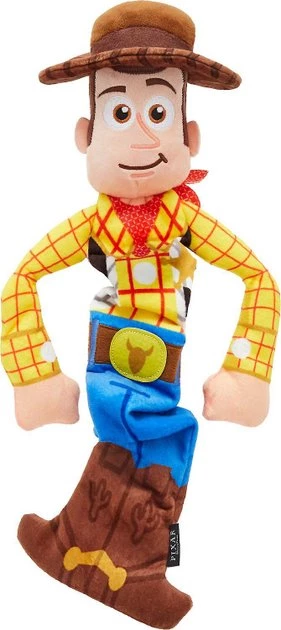 - The Pixar Woody Bungee Plush Squeaky Dog Toy is squeaker-stuffed to grab your dog’s attention and keep him focused on playtime.