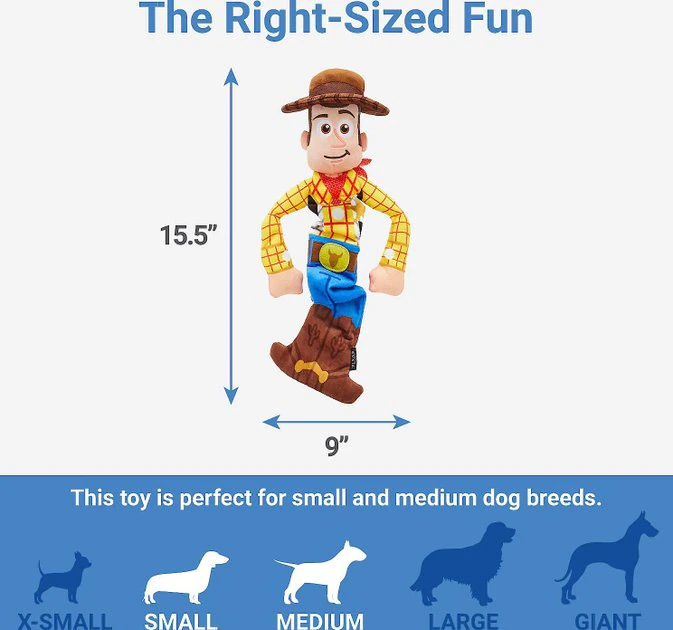 - Each purchase comes with The Pixar Woody Bungee Plush Squeaky Dog Toy & The Pixar Woody’s Boot Plush Squeaky Dog Toy.