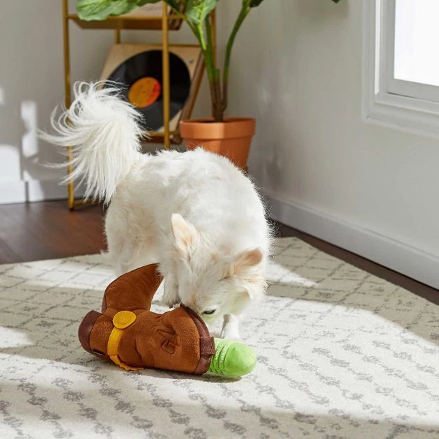 Celebrate your mini mate’s favorite movie! Each purchase comes with The Pixar Woody Bungee Plush Squeaky Dog Toy & The Pixar Woody’s Boot Plush Squeaky Dog Toy. The Pixar Woody Bungee Plush Squeaky Dog Toy is ready to spring into action whenever it’s time for some fun! It’s available only at Chewy, has a soft cover that’s easy on a dog’s mouth, and there’s crinkle paper and a squeaker stuffed inside to keep your pup’s attention on the fun and games. Not only that, there’s a bungee in the middle that keeps Woody bouncing back for more pup play. Give him a stretch, fling him far and watch your Pixar-loving pup race off to find his favorite interactive friend! The Pixar Woody’s Boot Plush Squeaky Dog Toy is available only at Chewy and features a soft, cuddlable cover that’s easy on your dog’s mouth and great for snuggles, too. Inside, there’s lots of soft stuffing and two squeakers to get his attention when it’s time for a rowdy game of catch or fetch. It’s even got the iconic snake, too, with a corduroy cover and a large squeaker inside! From snuggling and cuddling to animated interactive games, this Pixar toy does it all and it’s cute to boot!