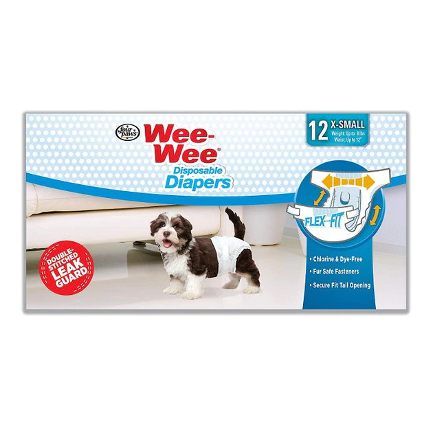 Wee-Wee Disposable Doggie Diapers provide your pup with a comfortable way to deal with “accidents.” The Flex-Fit dog waistband and Foam-Fit tail hole conform to your dog’s body to prevent leaks. These diapers also change color to let you know when it’s time for a change–with 12 hour guaranteed protection. Intended for canines over 20 pounds, consider Wee-Wee Disposable Doggie Diapers if your dog is incontinent, in training, in season or excitable, as these diapers will keep moisture locked in when nature calls.