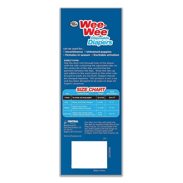 - Large diapers perfect for incontinence, untrained puppies, female dogs in season and excitable urination.